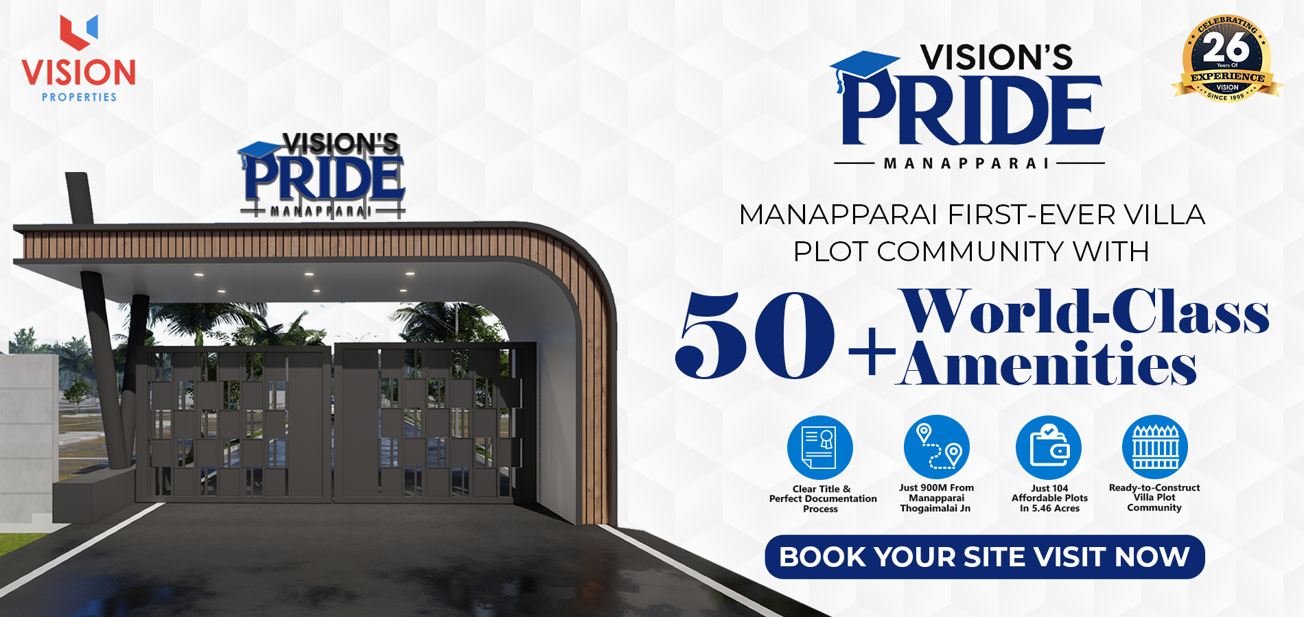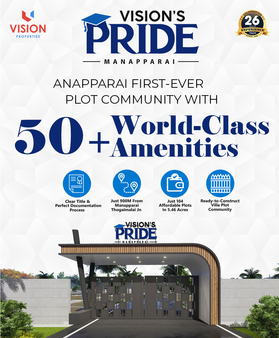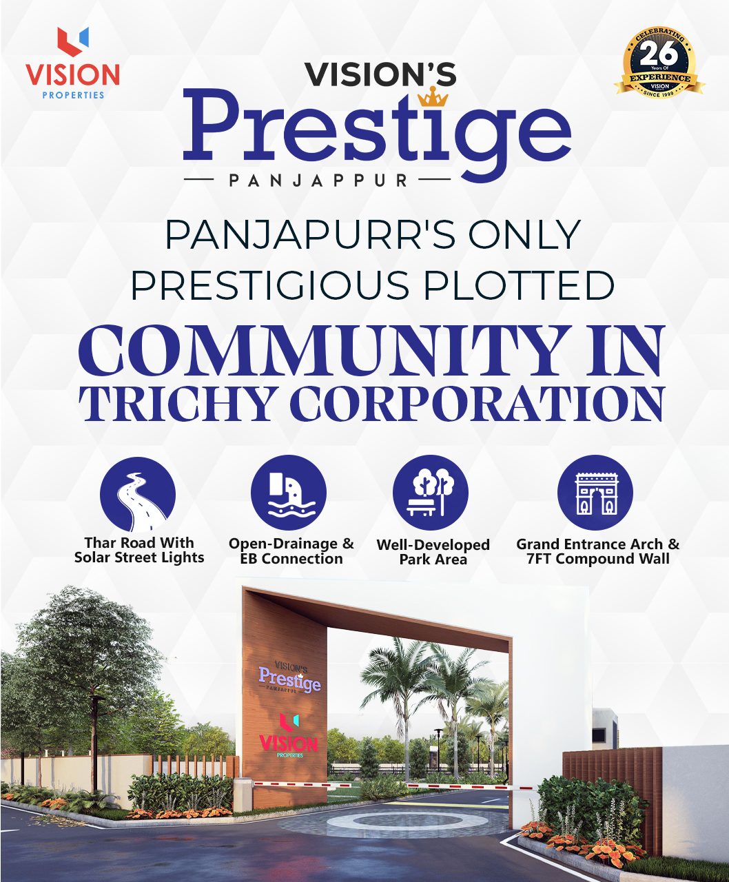 Vision Properties, founded in 2021 by visionary entrepreneur Mathewo Arulanandhu, has quickly emerged as a premier plot developer in Chennai and Trichy. Driven by a blend of deep-rooted respect for tradition and a passion for modern innovation, the company is committed to delivering luxurious yet practical housing solutions, thoughtfully designed with contemporary amenities to meet the evolving needs of homeowners.